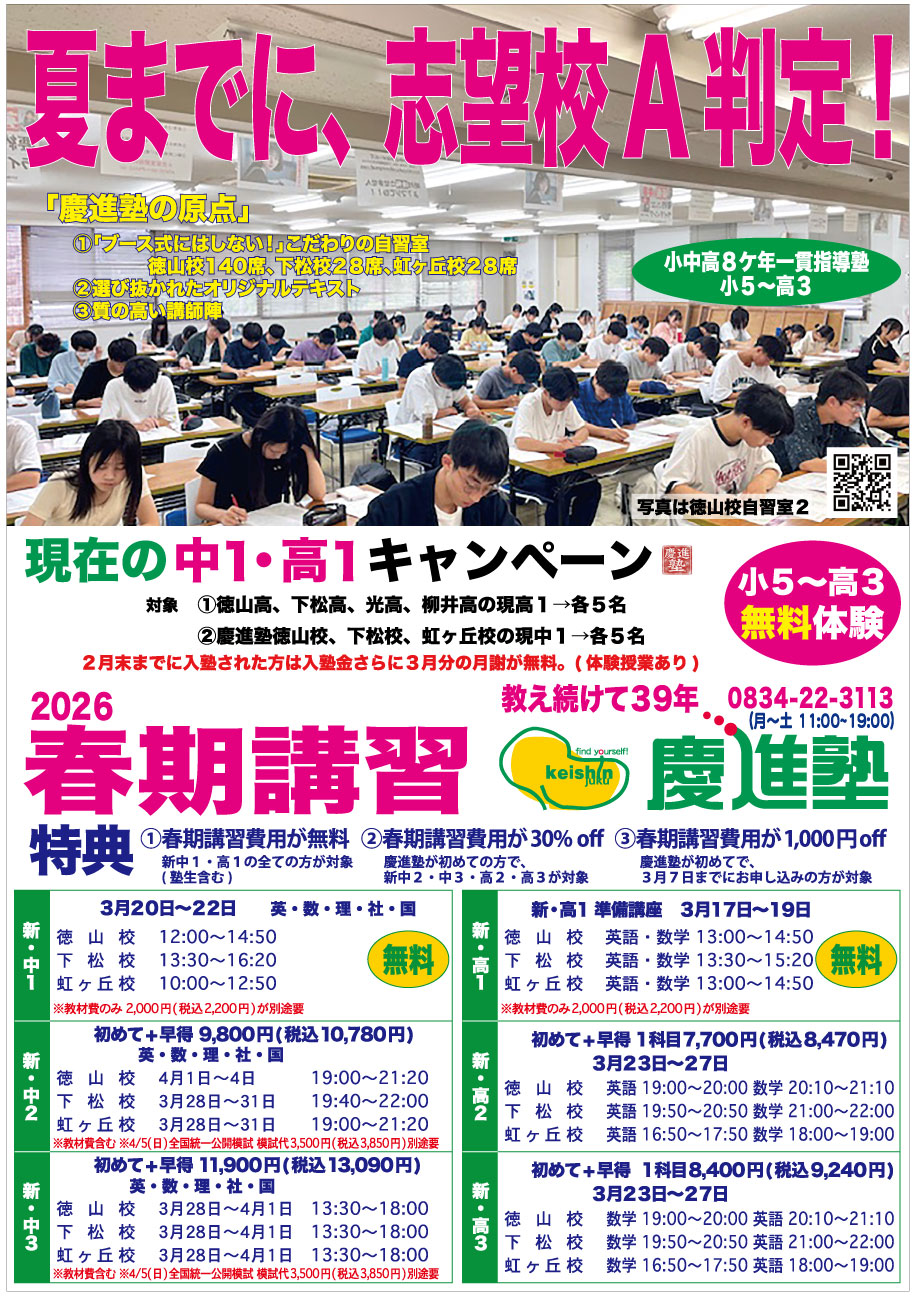 山口県周南市・下松市・光市の学習塾・進学塾 / 英語に強い、難関大学に強い慶進塾。
