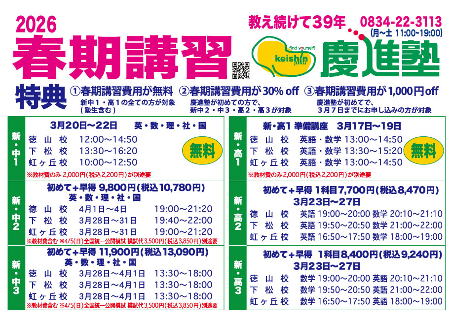 山口県周南市・下松市・光市の学習塾・進学塾 / 英語に強い、難関大学に強い慶進塾。